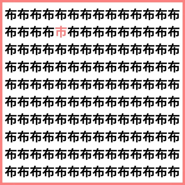 たくさんの「布」の中に、1文字だけ違う漢字が混ざっています。