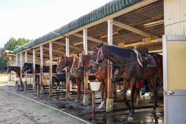 えさやり体験、乗馬体験、厩舎(きゅうしゃ)見学など、馬を身近に感じられる体験がそろっています。