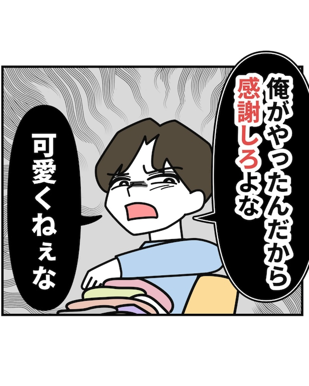 ある日のこと、夫・りょうたが「洗濯物を取り込んであげた」と妻・みゆきに報告しました。みゆきさんは「ありがとう」と言うものの、浮かない顔です。そんな夫は家事を手伝ってあげたのに、妻に言われたひとことで態度を急変させ激怒してしまいます。