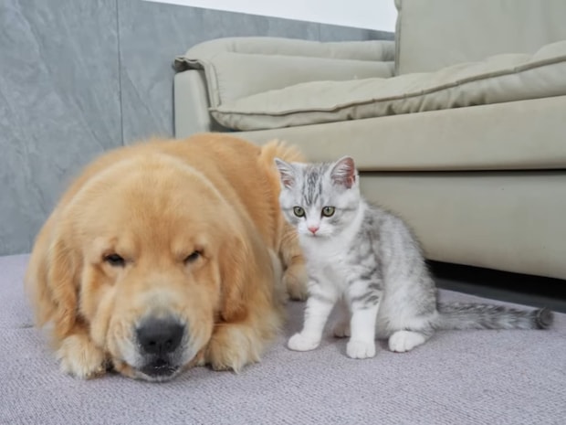 注目を集めたのは「子猫が何をしてもゴールデンレトリバーは決して怒らない」という動画。ゴールデンレトリバーと子猫が並ぶツーショットからスタートします。