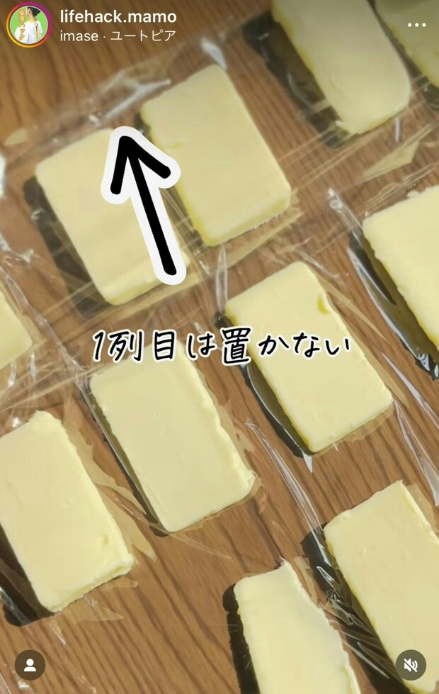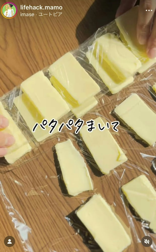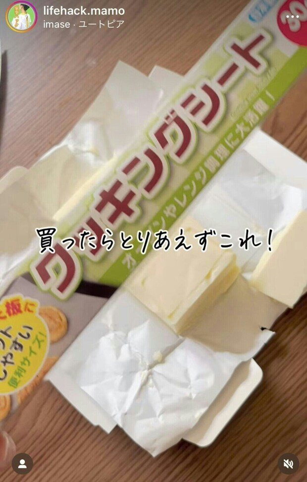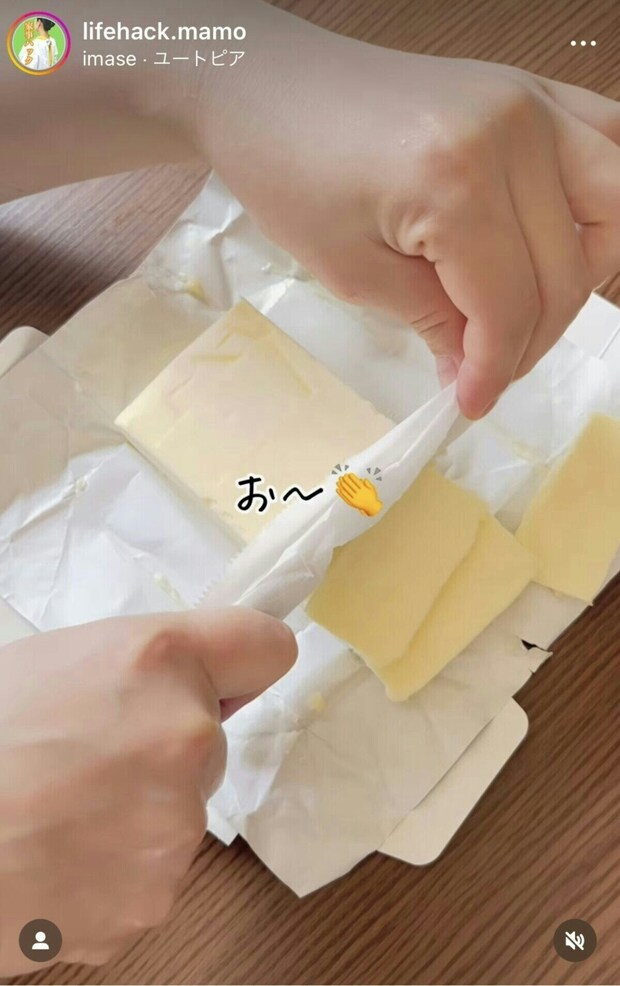 ライフハック まも☻ ̖́-さんが実践している、バターを切り分けるときの必須アイテムは「クッキングシート」。