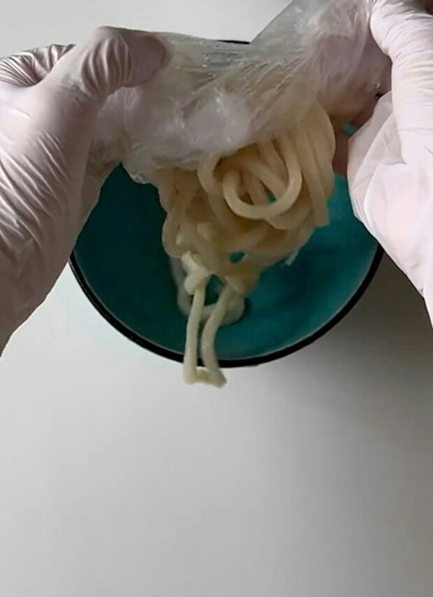 ポリ袋からうどんを器に出します。ぶっかけうどん、かけうどん、お好みに合わせてお召し上がりください。