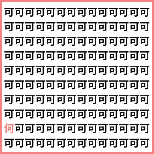 たくさんの「可」の中に、1文字だけ違う漢字が混ざっています。