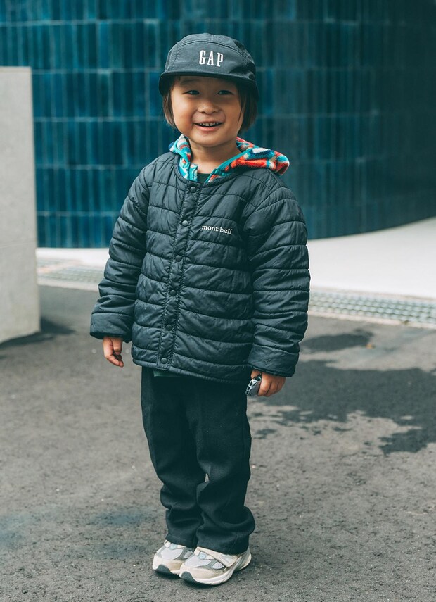 アウトドアミックスで動きやすく、元気いっぱいのキッズにぴったり! フードのカラフルな柄がで、遊び心を忘れずに。