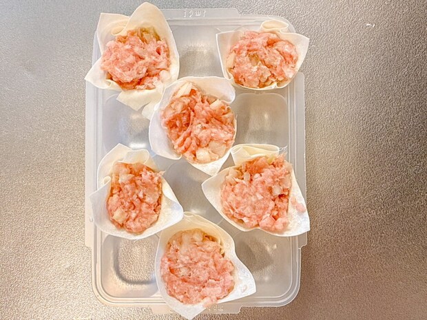 ①ひき肉・玉ねぎ・調味料を全部混ぜる