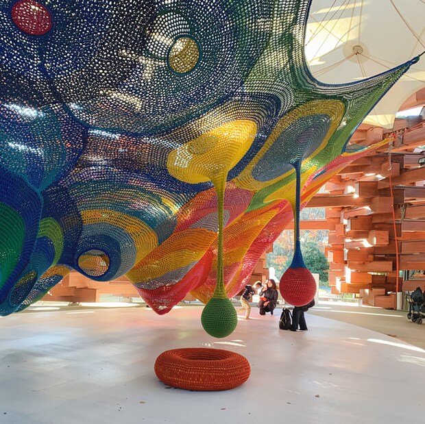 ネットの森は、色とりどりのネットでできた、体を使って遊べる屋外アート作品。