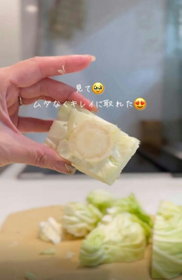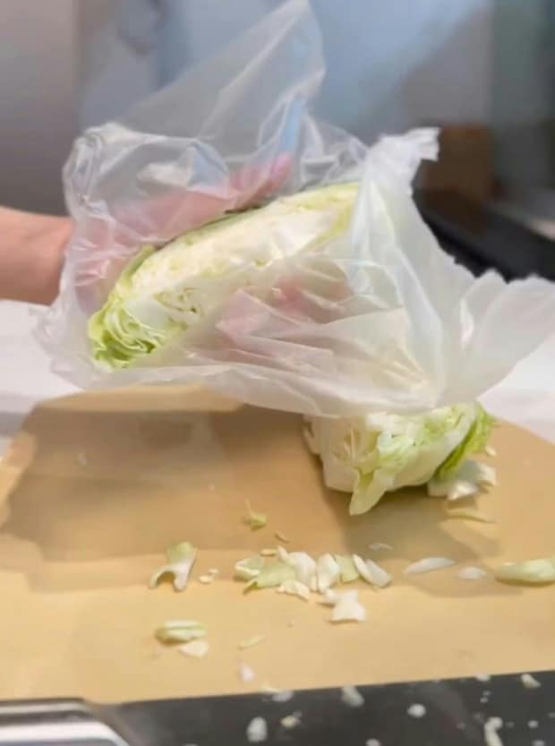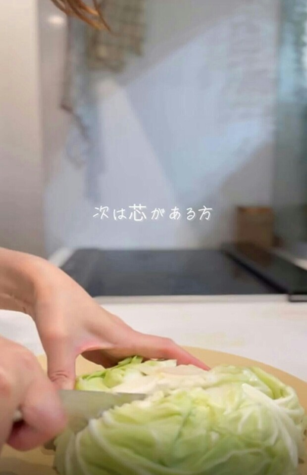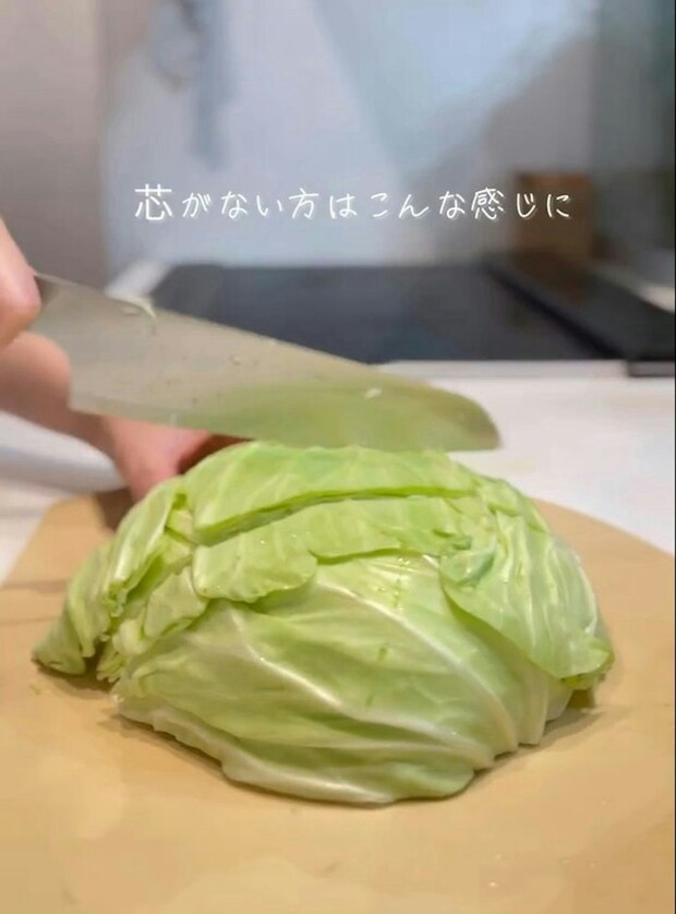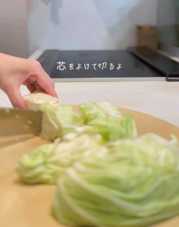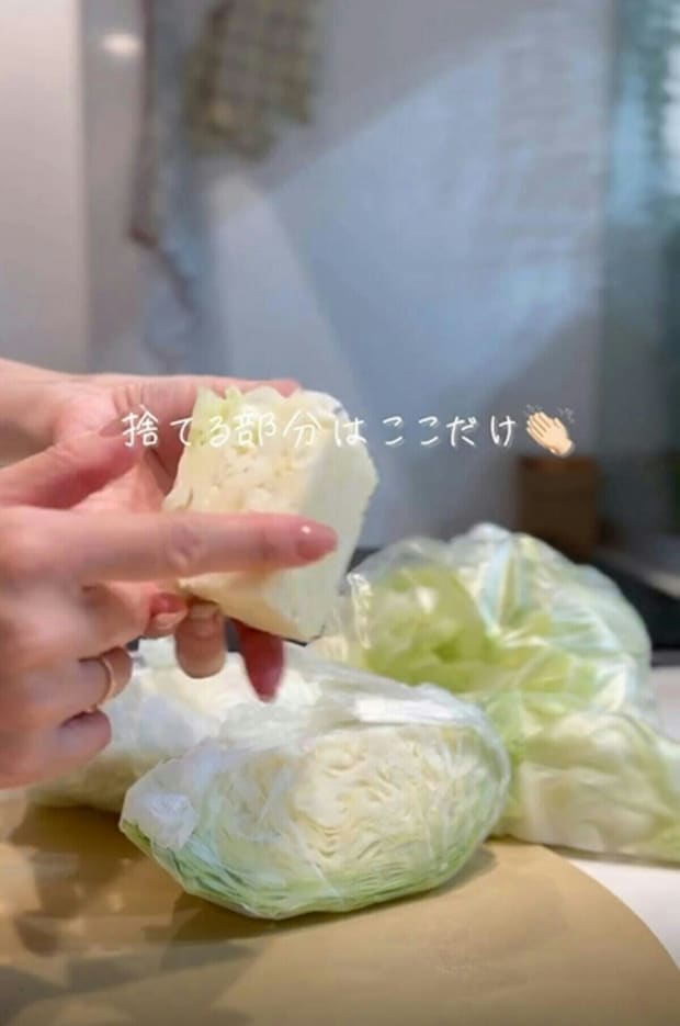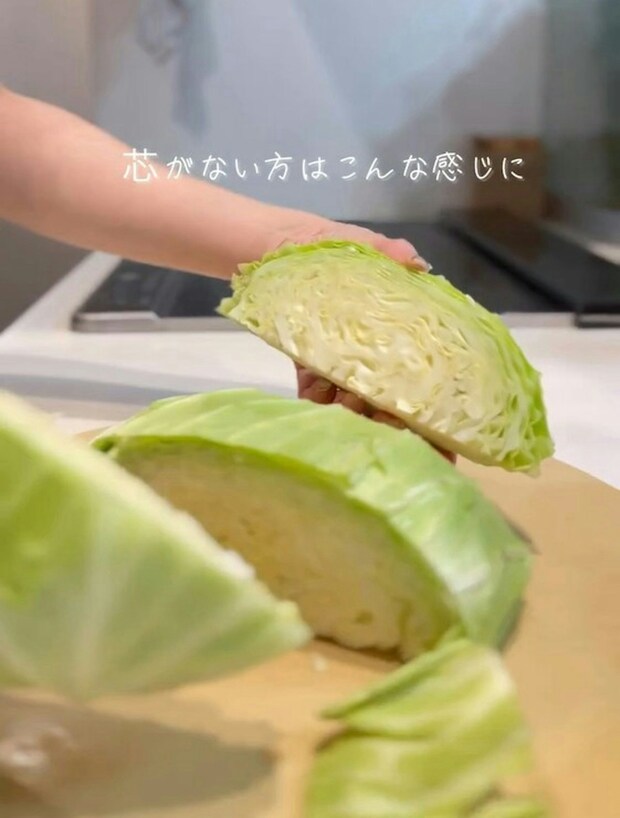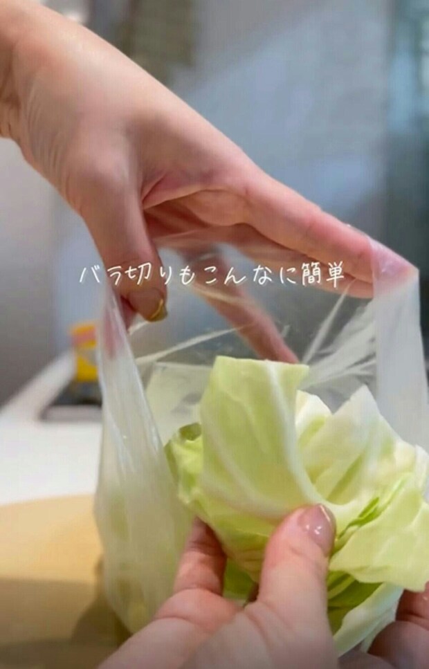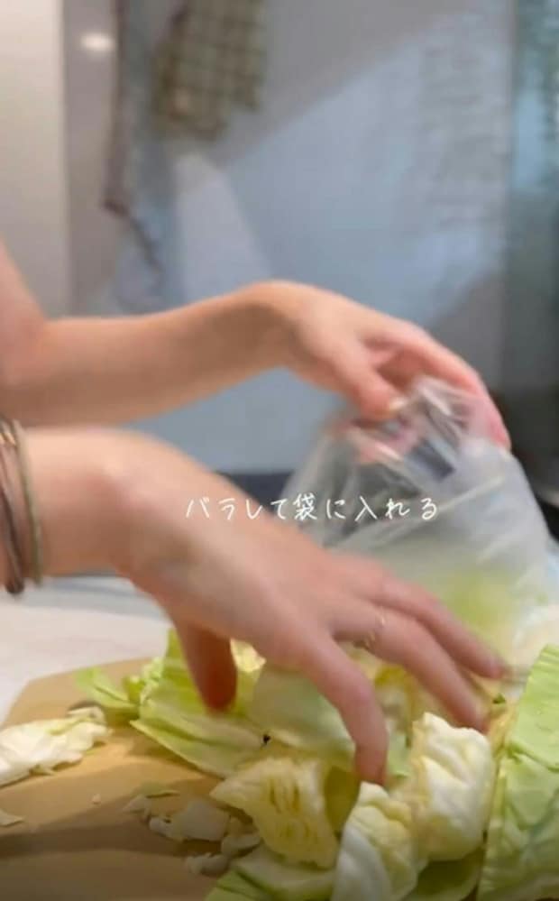 角切りにしたキャベツは、この状態で保存しておくことで、すぐに焼くことができるので、野菜炒めや焼きそばを作るときなど、炒め物がかなり楽になるとのことですよ。