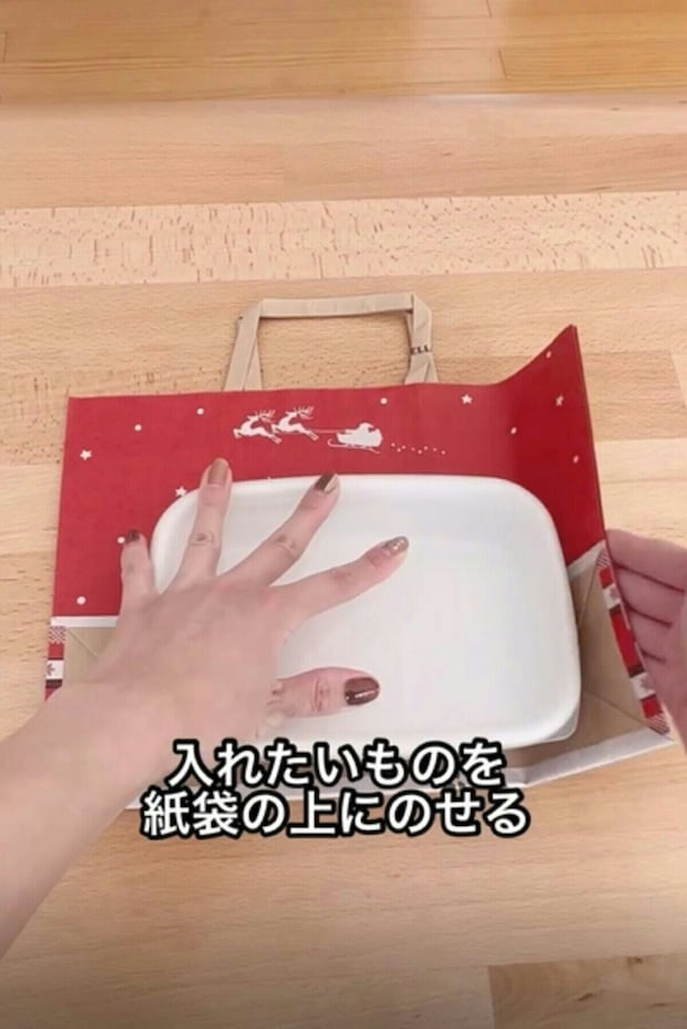 まず、紙袋の上に中に入れたいものを乗せます。