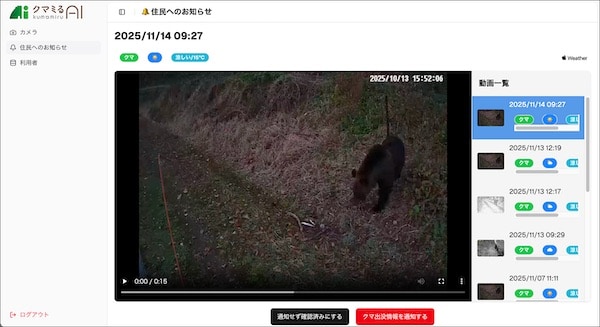 ただし、すべてをAI任せにするのではなく、担当者がカメラ映像でクマであることを確認してから配信ボタンを押す「半自動化」フローを採用しているため、イノシシ等の誤検知による住民のパニック(空振り)を防止。ヒューマンエラーのない確実な情報伝達をサポートしてくれるのだ。