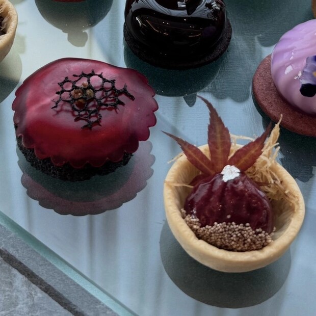 セイボリーで印象に残ったのが、一見栗のように見える、なんとフォワグラとチョコレートのマリアージュ!驚きと感動でした。他のセイボリーもきのこや紫蘇(しそ)、ビーツなど、体にやさしい素材を使った和のアクセントが心地よく、甘いものとの相性も抜群!