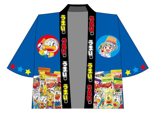 「うまい棒まつり」の第一弾「はっぴ・ゆかたデザインコンテスト」に応募して、自分がデザインしたはっぴやゆかたを手に入れてみては。