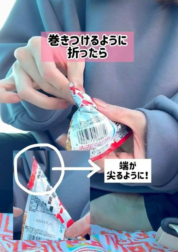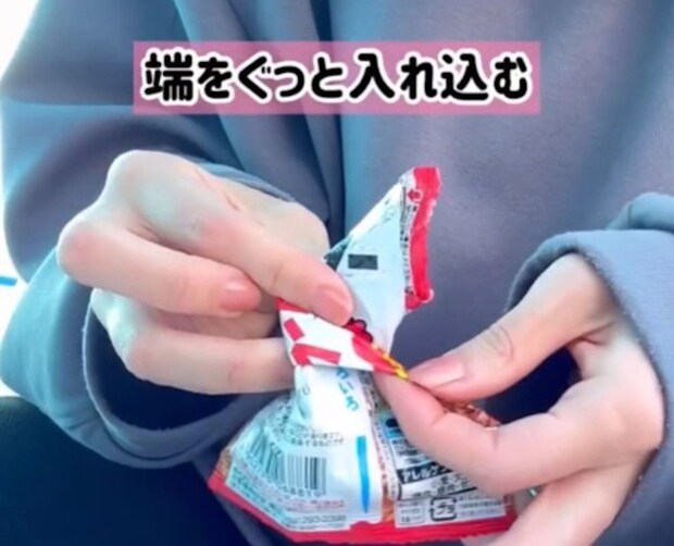 クリップいらない!【子育てハック】お菓子袋を手だけで閉じるテク