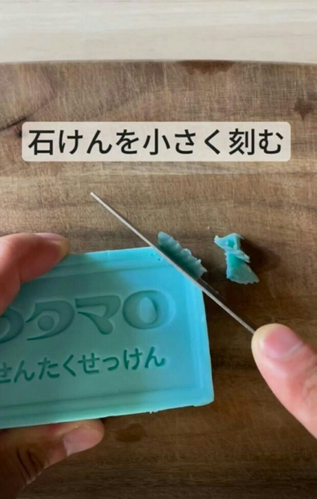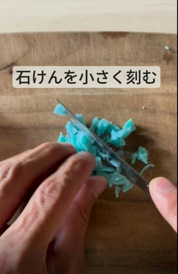 なんと、ナイフを使ってせっけんを削るように刻んでいくとのこと。