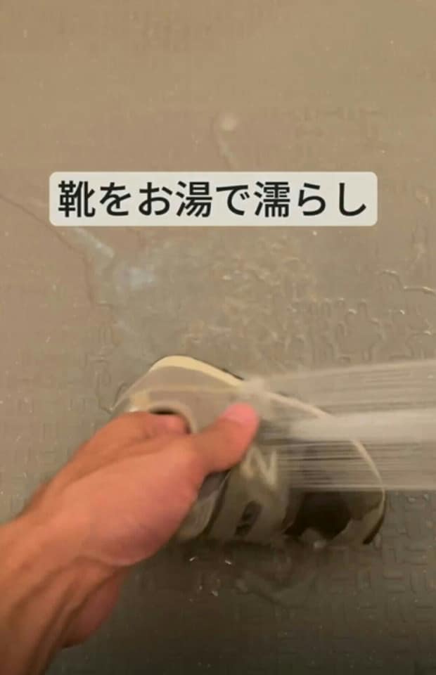 次に、靴をお湯でぬらします。