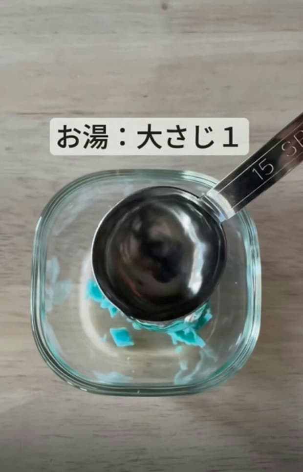 刻んだせっけんを容器に入れて、大さじ1のお湯を加えます。