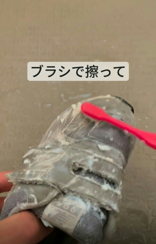 それだけ元気いっぱい遊んだ証拠とも言えるのですが、この靴を洗わないといけないママとしては困りものです。見事に汚れた靴、そう簡単には汚れは落ちません。