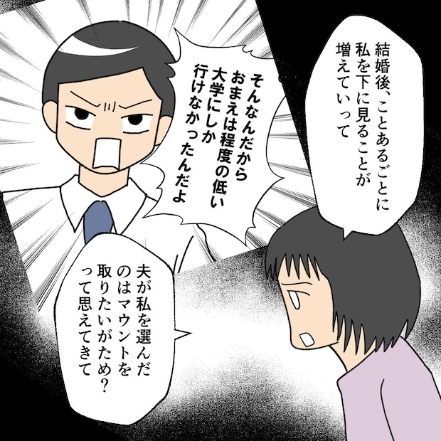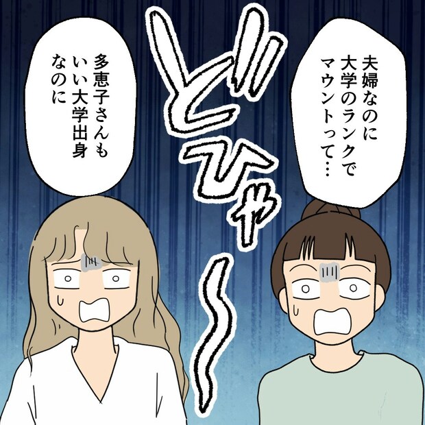 狐生は結婚後、何かと多恵子を見下すような態度をとるようになりました。夫婦間で学歴マウントをとる狐生に、ママ友たちもドン引きです。
