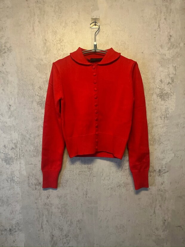 【赤】共地のくるみボタンもかわいい♡ショート丈カーディガン