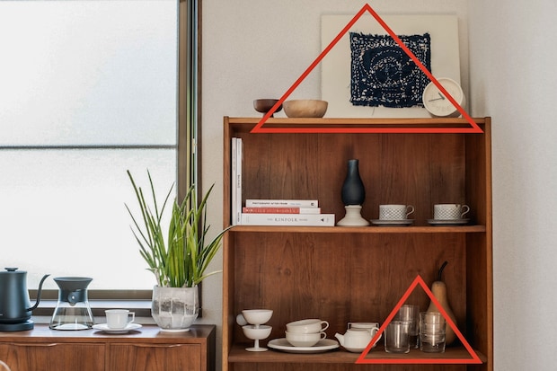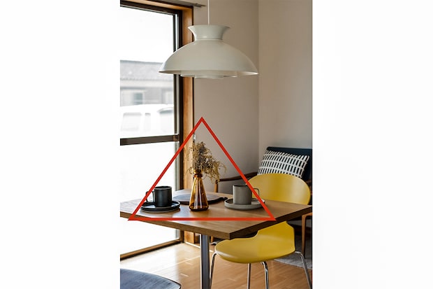 こちらは複数の対象物を1つにまとめて置くときに効果的。対象物を組み合わせて大きな一つの三角形をつくるように並べます。