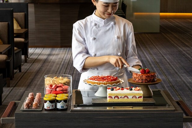 また、第3部の回(15時30分~)は、3段のケーキスタンドに加え、ワゴンに乗ったイチゴをふんだんに使用した6種のスイーツから好きなものを追加で選べる「スイーツのワゴンサービス」がセットになっている。