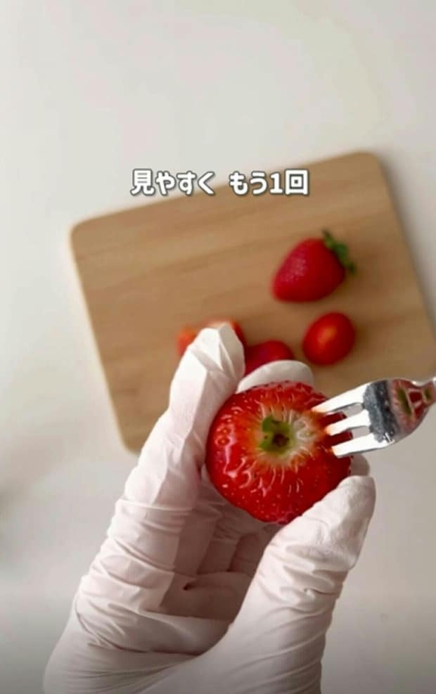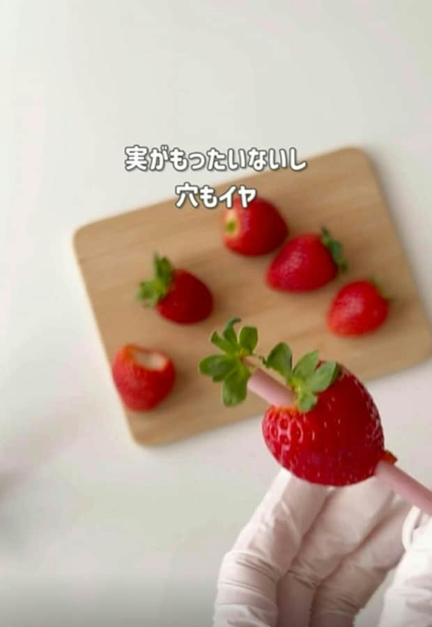もちろん、ストローでヘタを取る方法も画期的ですが、身がもったいなかったり、貫通させる位置も難しかったりしますよね。