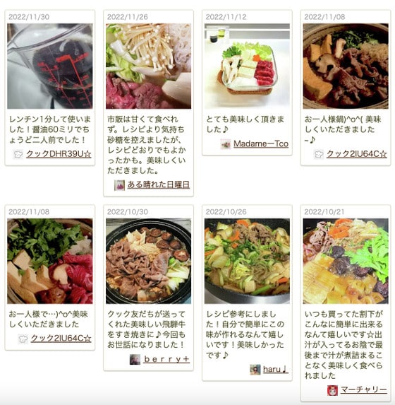 つくれぽ(つくりましたフォトレポートのこと)でも「お店で食べるような味を、気軽に家でも食べられるようになりました」「いつも買ってた割り下がこんなに簡単に出来るなんて嬉しいです」「いつもより良いお肉がこの割り下のお陰で活きました」など、みなさんその味に大満足の様子。