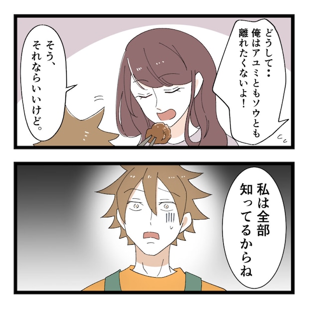 「どうして・・・俺はアユミともソウとも離れたくないよ!」ヒロトさんは必死に言いましたが「そう、それならいいけど。」とアユミさんは気にもしていない様子です。そしてひと言、ヒロトさんに言い放ちました。