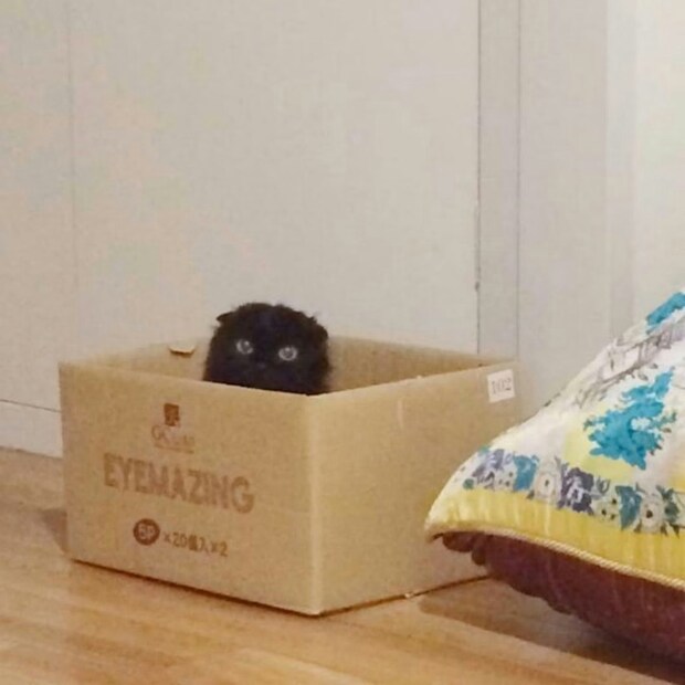 ふわふわした毛がいい感じに直角三角形を描いていて、まるでアニメに登場する猫キャラのよう。かわいいのはもちろんのこと、神々しい感じがしませんか?この投稿には「山神様だ!」「妖精みたい」「三角チョコパイみたい」などのリプライが寄せられていました。直角三角形の姿が、いろいろなものに見えるようです。
