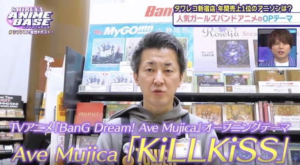 番組では、タワーレコード新宿店の「2025年アニソン売り上げトレンド」を調査。アニメコーナーを15年以上担当する樋口さんが登場し、第1位は、アニメ『BanG Dream! Ave Mujica』のオープニングテーマ『KiLLKiSS』だと発表した。