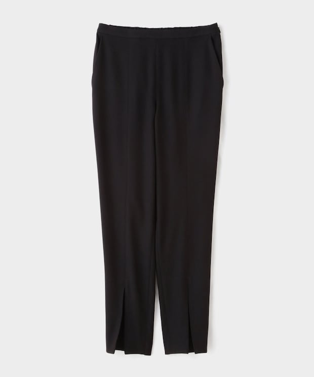 しっかりポケットもあり、一見するとごく普通のテーパードパンツのように見えます。同じような素材感で、フロントスリットではなくサイドジップタイプもあるので、お好みでチョイスしてみてくださいね。カラー展開はブラック、ホワイト、ネイビー。お仕事シーンにはもちろん、お子さんのいらっしゃる方は学校行事にも対応できると購入されることも多いそうですよ。