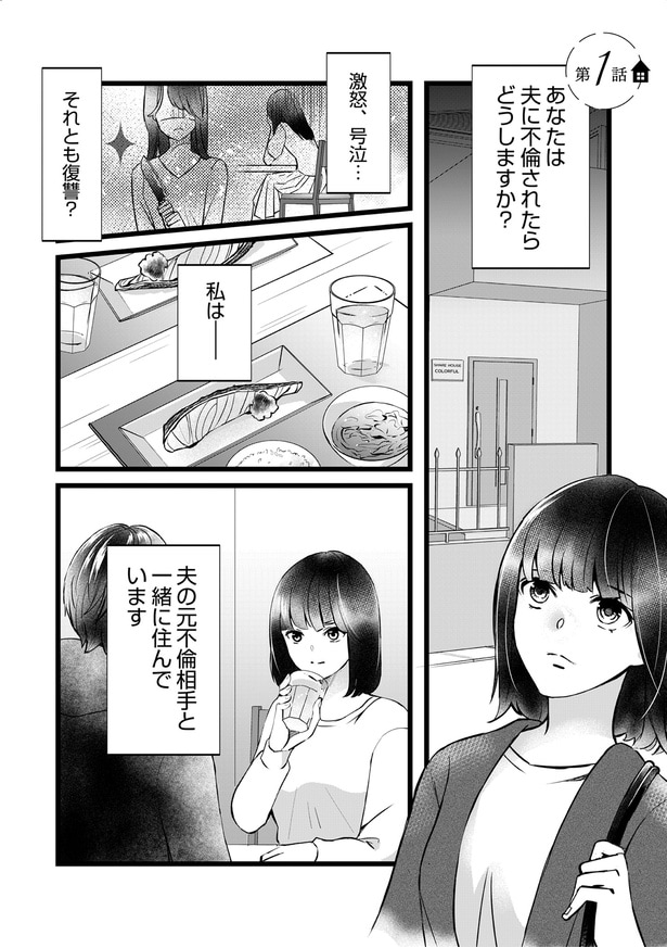 夫の元不倫相手と一緒に暮らす摩訶不思議なストーリー「夫の元不倫相手とルームシェアしています」 (漫画:兎月メイ、原作:風沢氷花)から全4回連載でお届け。今回は第1回目となる。