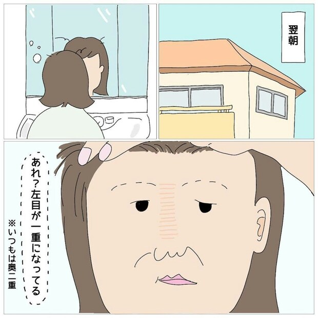 最初の違和感は目でした。いつもは奥二重なのに、左目だけが一重になっていたのです。