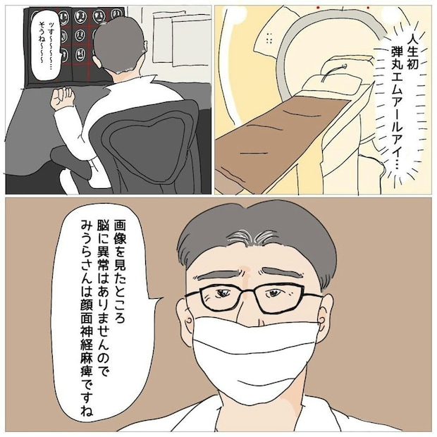 翌日、脳神経外科でMRIを撮ったところ「顔面神経麻痺」と診断されたのです。