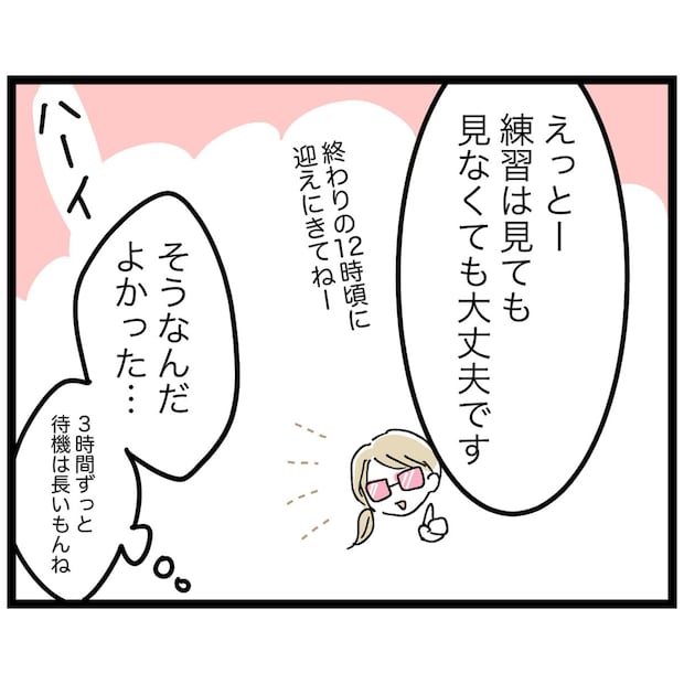 3時間ずっと待っているのはつらいし、見ていなくていいと言われてほっとしたもっつんさんでしたが、他の保護者たちは、誰ひとりとして帰る様子がありません。