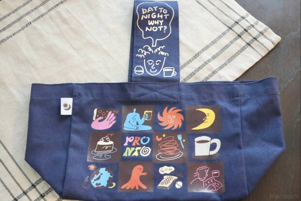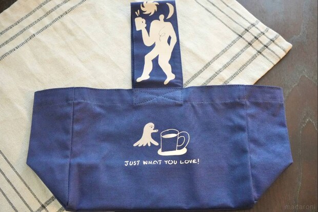 反対面にはタコさんとマグカップとともに'JUST WHAT YOU LOVE! 'のフレーズがプリントされています。ミニサイズのトートバッグで、ランチボックスを入れるのにもちょうど良いサイズ感ですよ。※サイズは筆者計測による目安です。
