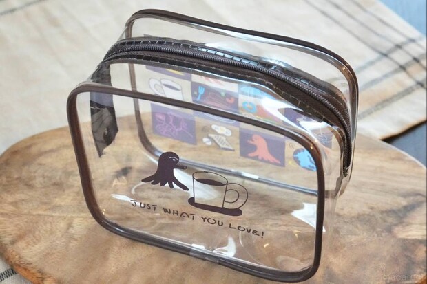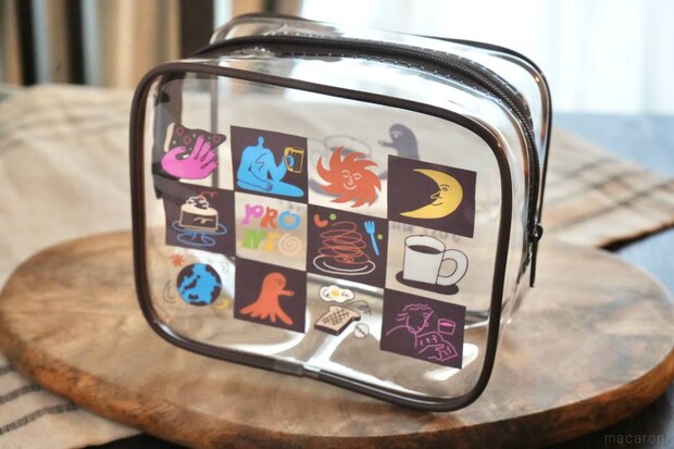 「昼と夜でブロックごとにイメージが分けられていて濃い色は夜、背景のない方は昼のイメージでデザイン」されており、クリアポーチはよりくっきりとデザインが際立ちます。