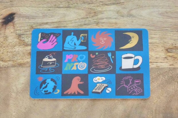 デザインしたnorahiさん曰く「あさごぱん・タコさんウインナー・パスタ・プリン・ピザなど、PRONTOから連想するモチーフを、高揚感のある感じで楽しげに描いてみました。ゆっくり自分の時間を過ごす人やお酒を楽しむ人の姿も。太陽と月のモチーフはロゴから。」とのこと。絵のタッチとカラフルな色づかいに元気をもらえます。