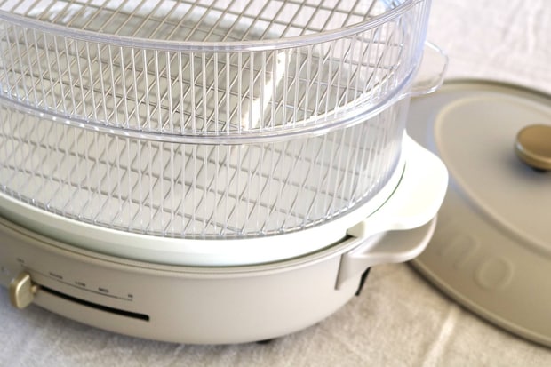 深鍋と組み合わせて蒸し料理が作れる、オーバルホットプレート専用スチーマー。
