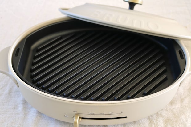 お肉やお魚に、おいしそうな斜めの焼き目がつけられる、「オーバルホットプレート」専用のグリルプレートも入っています。さらに、余分な油を落とせるのでヘルシーな仕上がりに。