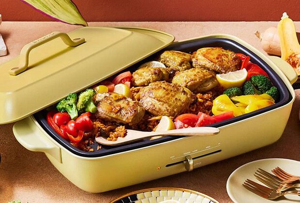 ホットプレート グランデサイズで作るなら、「メキシカン風カレーピラフ&チキン」がおすすめです。ホットプレートひとつで、ボリューミーかつ豪勢な料理が作れますよ。
