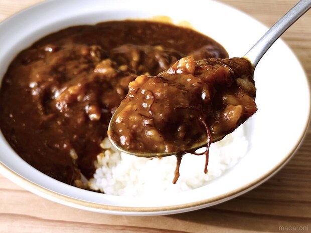 お肉は繊維状にほぐれるほど煮込まれており、その旨みがカレーにしっかりと溶け込んでいます。お店風の本格味で、濃密ながらも飽きのこないおいしさです。