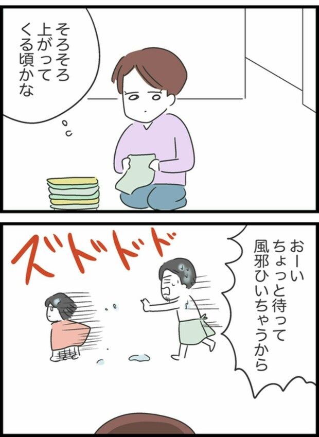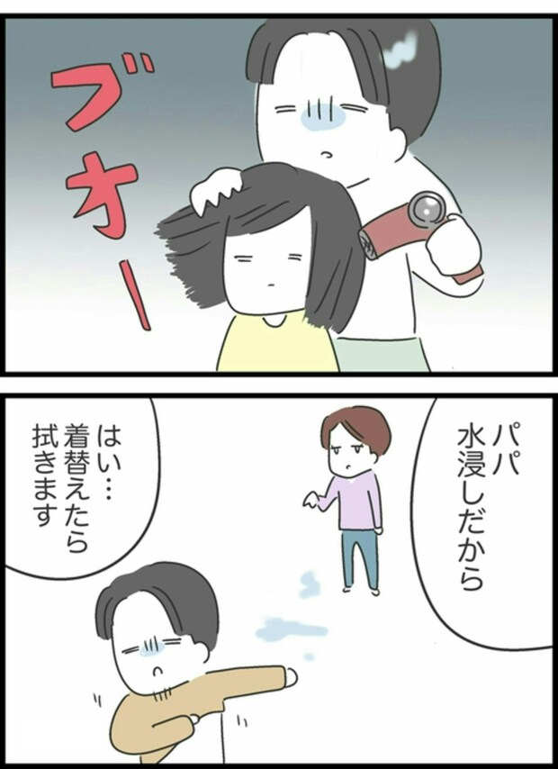 友人・かなの夫は、最初から育児を完ぺきにこなせるわけではありませんでした。共働き夫婦のかなは、夫に「ちゃんと育児に参加してもらいます」と宣言。「ちゃんと」というのは、お風呂に入れるだけではなく、お風呂前の準備と上がったあとのケアも含みます。