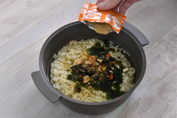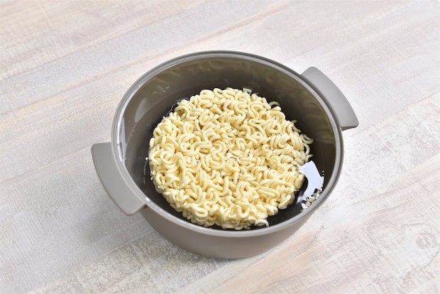 ノグリ袋麺に記載されていた加熱時間が5分だったので、そこに4分をプラスして合計9分加熱します。