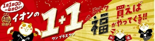 目玉企画として、対象商品を購入すると特典が付く「1+1」企画を初開催し、例えば1月1日限定でLサイズのピッツァを購入するとコカ・コーラが付いたり、対象の衣料品や日用品を1点分の価格で2点購入できたりします。