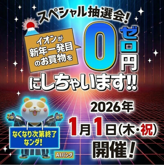 2026年1月1日(木・祝)、「イオン」および「イオンスタイル」の直営売場にて、同日の税込5,000円以上のお買い上げレシートを対象とした抽選会を実施します。