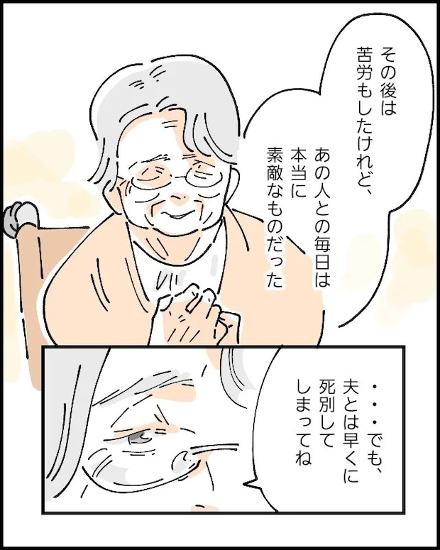 「その後は苦労もしたけれど、あの人との毎日は本当に素敵なものだった・・でも、夫とは早くに死別してしまってね」と寂しそうに言い、