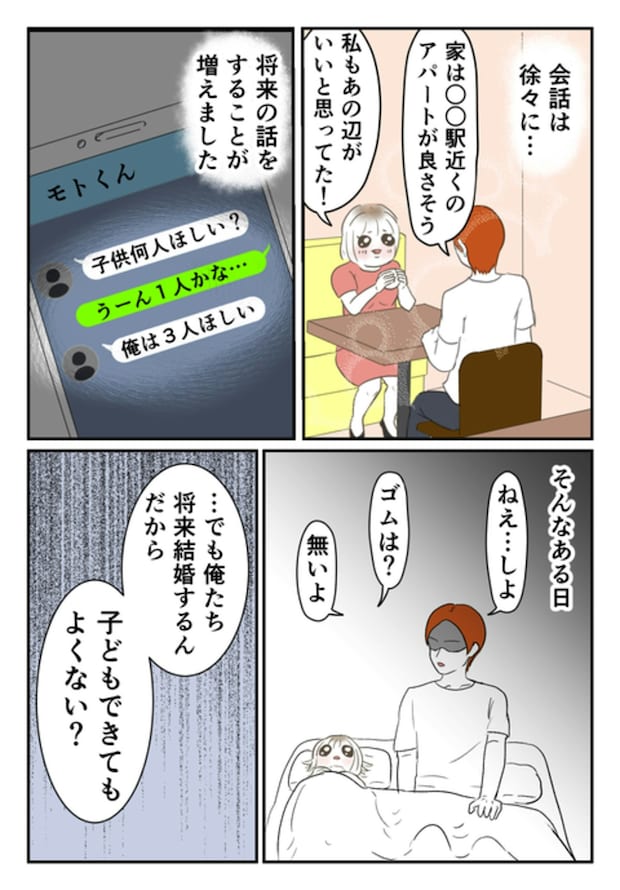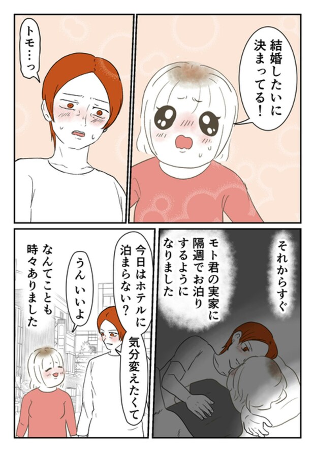 モトさんの実家からの帰り道、モトさんから「本気で将来を考えてほしい」と言われ、尾持さん自身も「結婚したい」と答えます。その後、旅行やお泊りで濃密な時間を増やしていく2人…。将来の話が進んでいく中、気になるところが出てきて…。