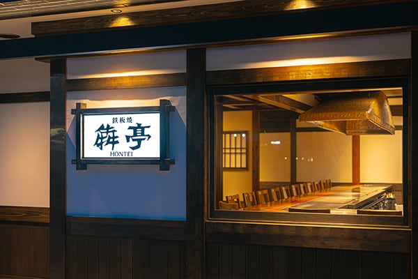鉄板焼犇亭の外観。右側が鉄板焼店、左が新設したHONTEI CAFE