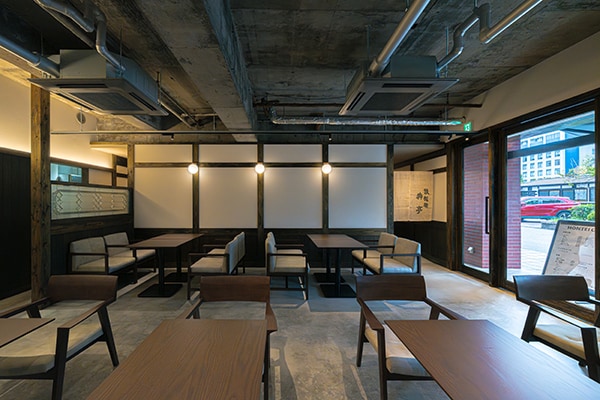 新設のHONTEI CAFE店内。コンセプトの大正ロマンを現代風にアレンジ