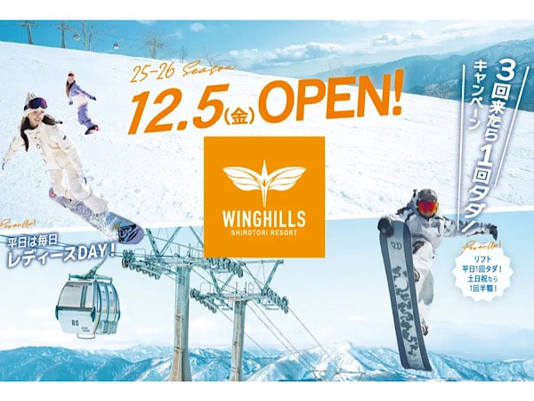 岐阜県郡上市にある天然温泉付スキー場「ウイングヒルズ白鳥リゾート」では、2025年12月5日(金)よりウインターシーズンが始まっている。